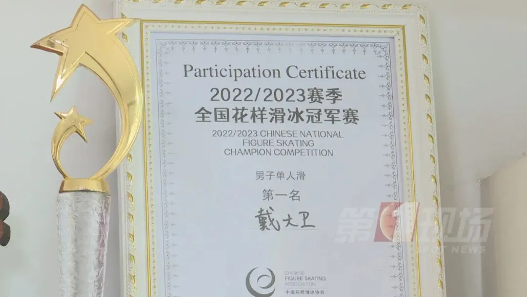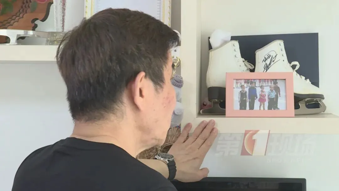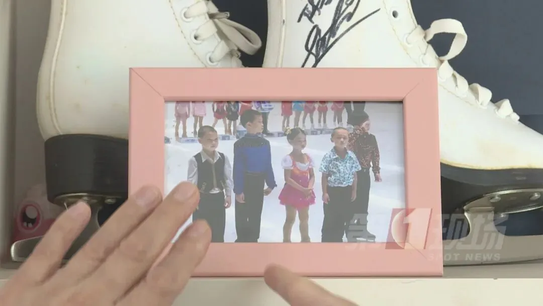 ▲照片背后是大卫偶像陈露(中国第一位花样滑冰世界冠军)签名的花滑鞋