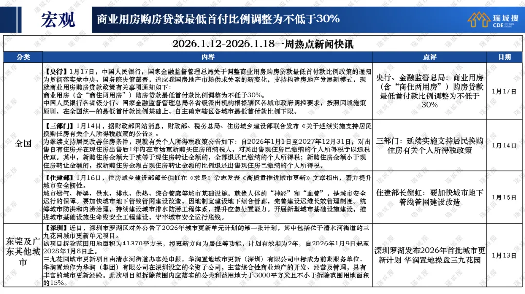 ①政策: 商业用房购房贷款最低首付比例调整为不低于30%