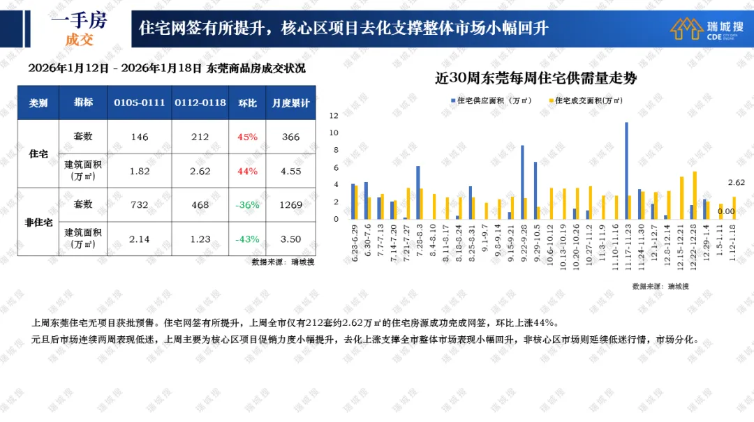 ②成交: 住宅网签有所提升,核心区项目去化支撑整体市场小幅回升
