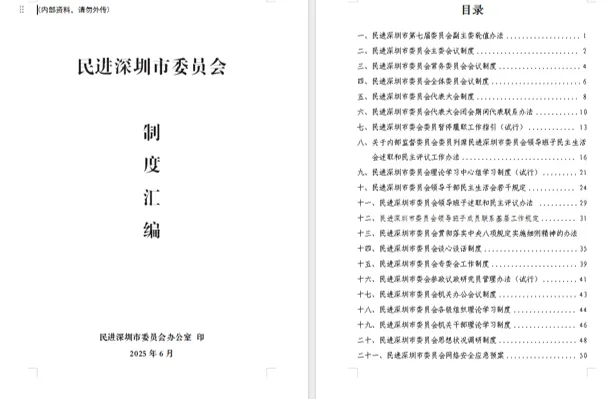 市委会以强基固本为目标,将自身建设贯穿工作全过程,持续加强作风建设,统筹推进组织建设、制度建设和机关建设,不断夯实发展根基、提升治理效能,增强组织的凝聚力、战斗力和执行力。 我们全年严格执行“第一议题”制度,开展12次主委会议、3次常委(扩大)会议及4次理论学习中心组专题学习,构建“领导带头学、基层联动学、会员主动学”的立体化学习格局;推进“学规定、强作风、树形象”主题教育,召开廉政警示教育会议,通报违纪违法典型案例;新制定《民进深圳市第七届委员会副主委轮值办法》等3项制度,完善涵盖4大类44项制度的体系框架;引入OA系统提升机关办公效率,建立谈心谈话制度增强干部凝聚力。8月27日,市委会在机关会议室召开2025年第3次理论学习中心组会议暨领导班子“学规定、强作风、树形象”主题教育专题读书班。8月27日,市委会在市政协三楼会议室召开七届二十二次常委(扩大)会议暨廉政警示教育会。市委会已建立起涵盖组织运行、履职管理、内部监督和作风建设四大类、共44项规章制度的制度体系。
