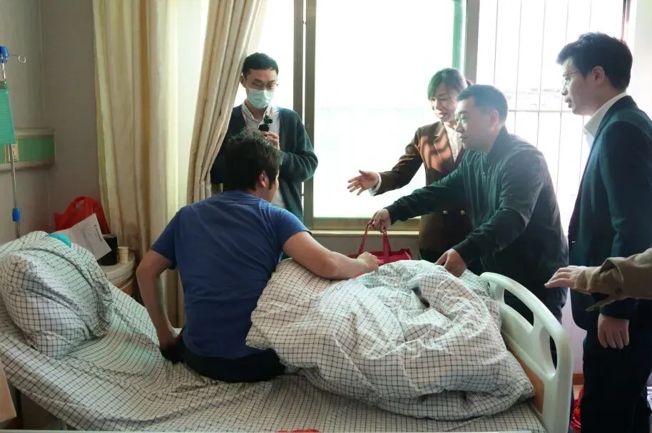“伤口恢复得怎么样?”“生活上有什么困难?”在病房里,工会领导与受伤职工亲切交谈,详细了解他的治疗进展和康复情况。这位职工在工作期间不慎受伤,目前正在医院接受系统治疗。