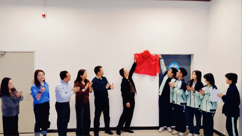 在全场掌声中,羊仲石书记携手融媒体中心学生负责人黄煌锌,与在场领导嘉宾一同为“东莞十中融媒体中心”揭牌。随着红绸徐徐落下,熠熠生辉的牌匾正式亮相,标志着我校融媒体事业在各方共同见证下,昂首迈上新征程。
