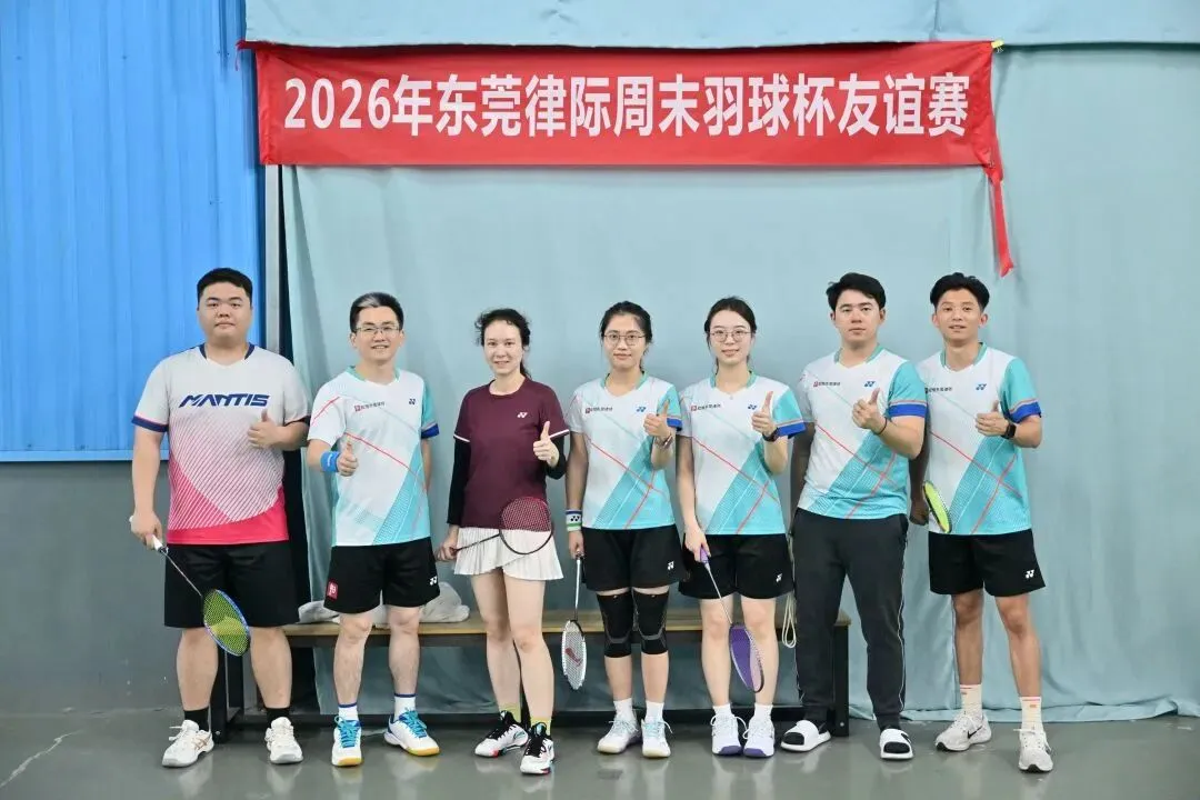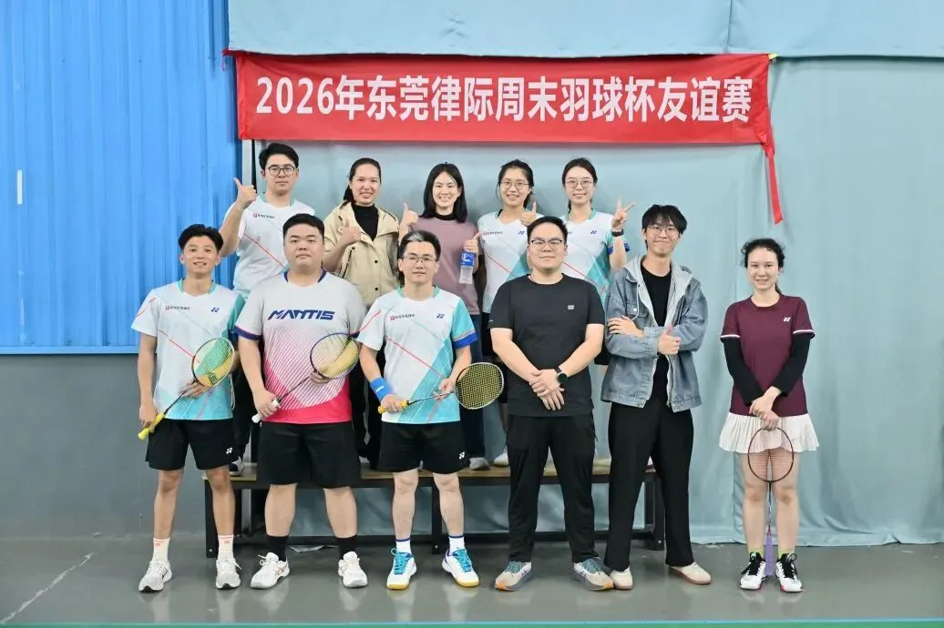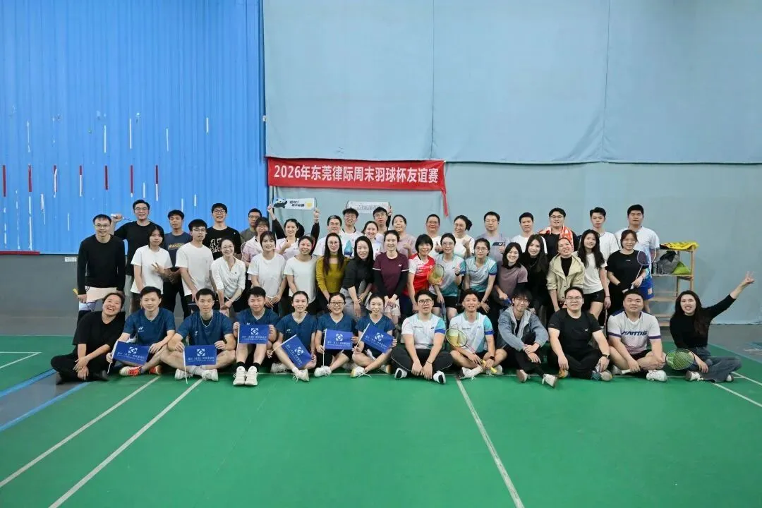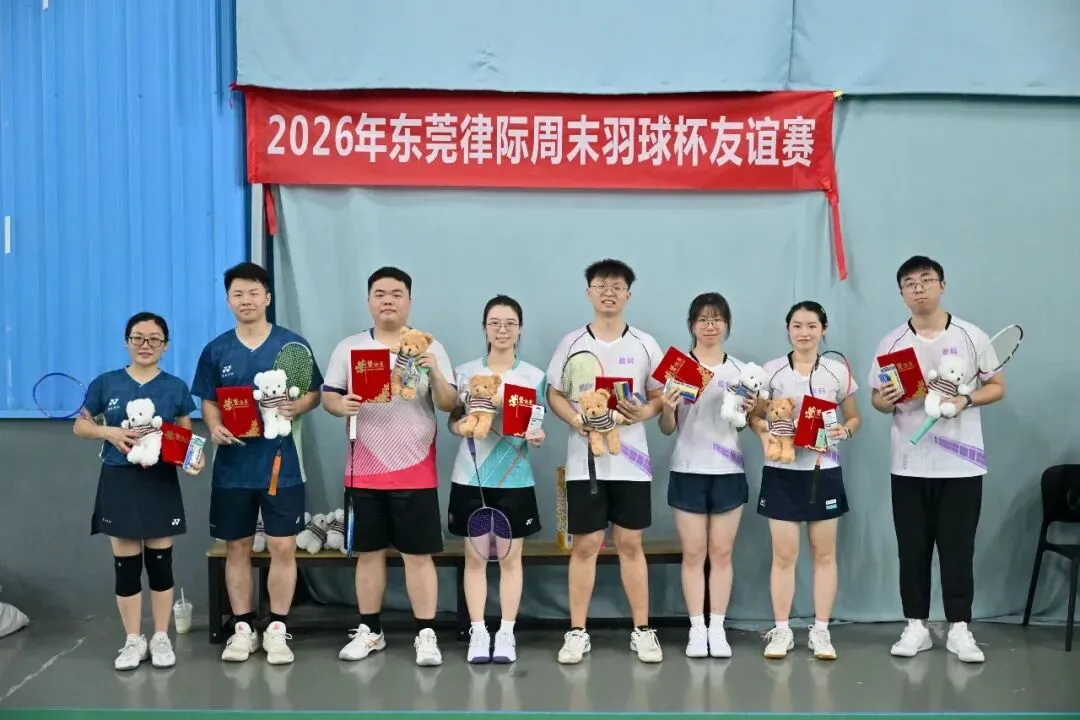 为搭建东莞律师行业交流桥梁,丰富律师业余生活,倡导健康生活方式,2026年1月17日,由连越(东莞)、盈科(东莞)、知恒(东莞)、赋诚、莞湾、 广和(东莞)、名道、金鹏(东莞)八家律所联合举办的“东莞律际周末羽球杯友谊赛”在热烈氛围中圆满落幕。