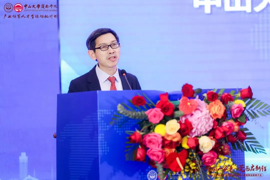 钟一彪书记为活动致辞。他向大会的成功举办表示热烈祝贺,向长期以来关心和支持学院发展的校友们表达诚挚感谢。他介绍了学院近一年来在人才培养、数字经济专硕建设、国际化办学及校友工作等方面取得的新进展,并向校友们详细介绍了“中山大学-日内瓦大学企业家学者项目”。该项目依托中山大学及日内瓦大学的学术优势,融合瑞士金融实践经验与粤港澳大湾区产业优势,通过“思辨课堂+前沿课堂+海外课堂”和“四维联动”的行动学习体系,培养科创投资与财富管理领域学者型企业家。