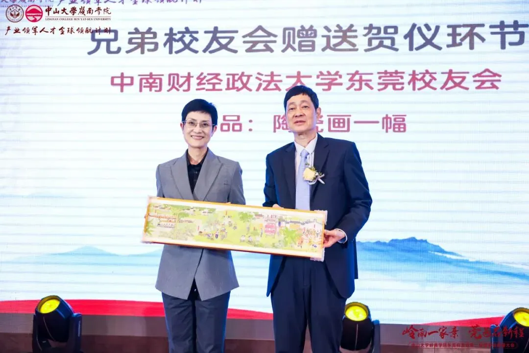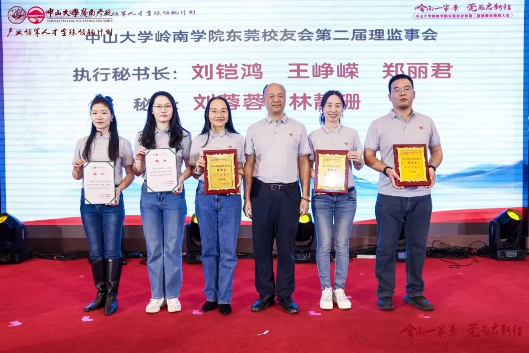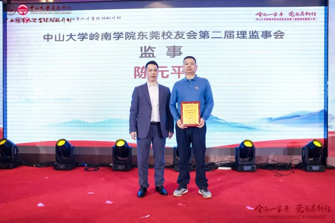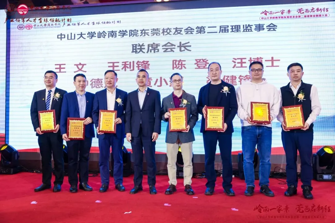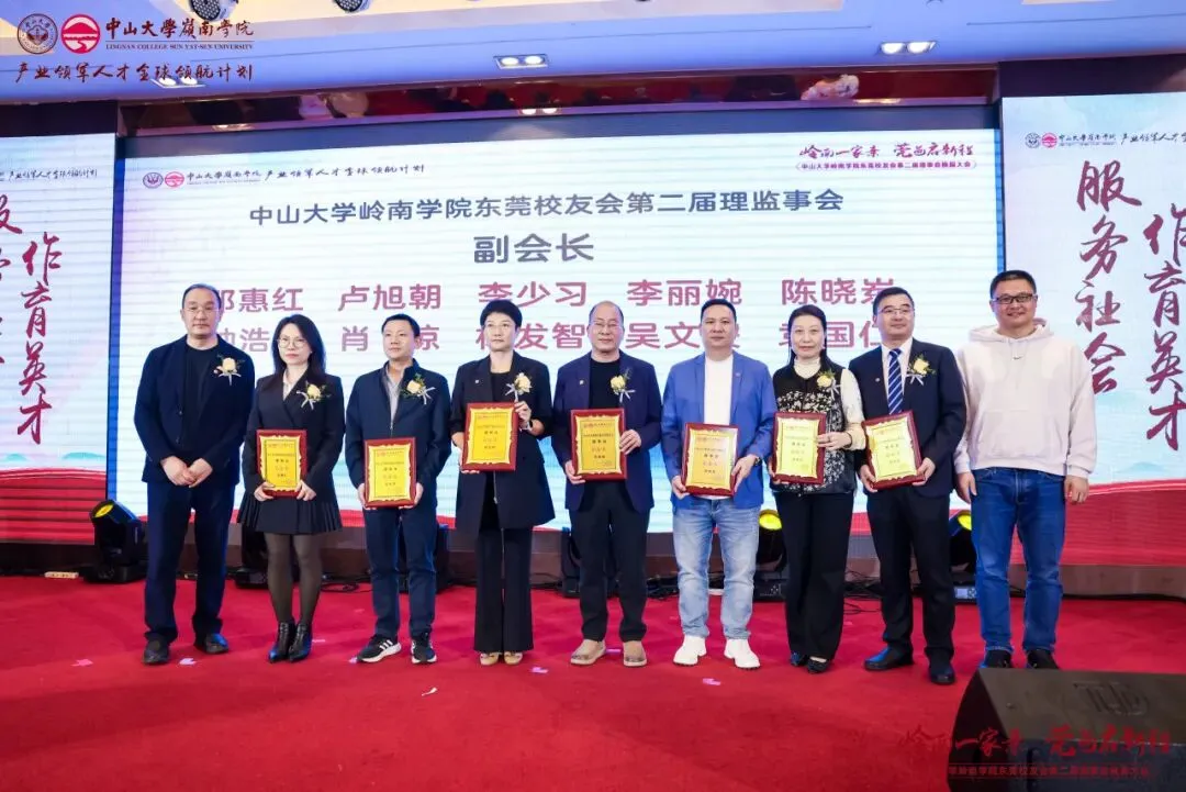 经会议审议及表决,东莞校友会产生了第二届理事会成员,并通过了校友会章程。本届理事会共69位成员,黄卫东校友当选中山大学岭南学院东莞校友会第二届理事会会长,左湘凌、肖锡洪、黄俊校友当选荣誉会长,莫振锻校友当选监事长,王文、王利锋、陈登、汪博士、钟德成、黄小辉、梁健锋校友当选联席会长,方彩霞、马雷鸣、刘鸿、姚天敬、段国强校友当选执行会长,刘蓉芳校友当选秘书长。钟一彪书记为会长、荣誉会长和监事长颁发聘书。阮文杰、黄卫东会长分别为联席会长、顾问、执行会长以及理事会成员们颁发聘书。一纸聘书,承载责任;一份使命,凝聚担当。东莞校友会第二届理事会全体成员将接过这份使命和传承,带领东莞校友会再起征程。