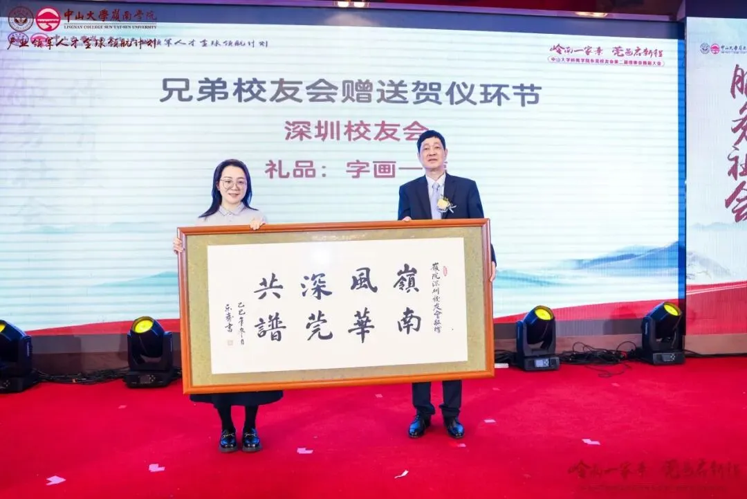 国际宇航科学院终身院士何质彬先生亲临现场,作为“两弹一星”的参与者,他的一生一直和中国航空航天事业紧紧联系在一起。他对本次换届大会表达了祝贺,并为大会亲笔题写了“岭南一家亲”贺词。学院各地校友分会代表和其他兄弟高校嘉宾代表欢聚一堂,共叙校友情,同赴新征程!