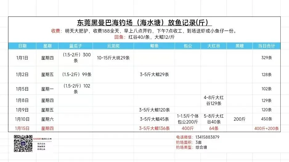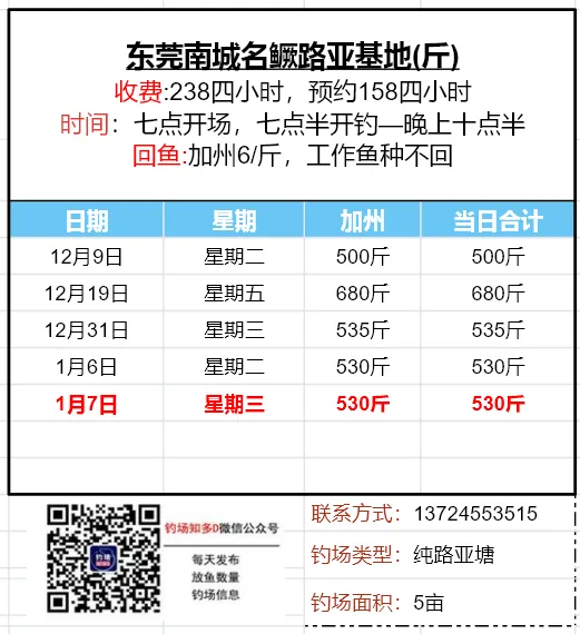 本文收录东莞地区比较知名和靠谱的钓场放鱼数据,