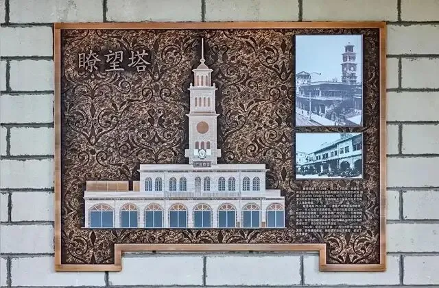这是一座英国钟楼式瞭望塔,高29.52米,一度是当时广州最高建筑,可以360度俯瞰广州全景。负责监测火情的瞭望员24小时值班,手持望远镜监测火情,一旦发现到火情,就会拉铃示警,并通过竹筒向下面的人通报火灾地点。