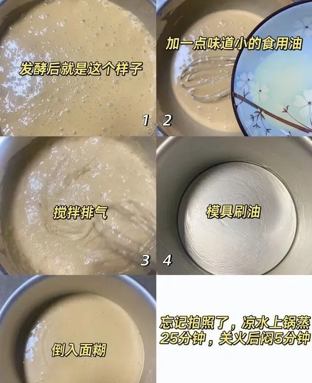 看到面糊涨到两倍大 , 表面冒出密密麻麻的小气泡 , 就差不多了。