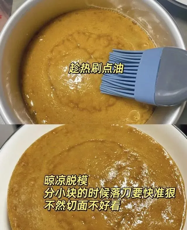 趁热在表面刷一层玉米油 , 亮晶晶的特别好看 , 还能保湿防干。