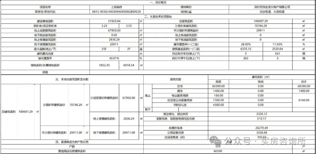 深业上宸瑞府位于龙华区大浪与民治街道交汇处,共分南北两个地块两期开发,已于8月8日下午拿下A815-0037地块后即同步动工建设,实现了"拿地即开工"的效率。项目是新国标地块,建25层左右小高层,容积率3.1,地处龙华核心地段上塘,2026年比较值得期待的一个楼盘项目平面图已经出炉,户型面积也有曝光!首推上宸瑞府地块569套新国标户型产品,均为25层+3.1容积率小高层,户型曝光面积为主力89㎡三房两卫和92㎡四房两卫,剩下就是改善119㎡和129㎡大四房,都是2梯4户或者2梯6户,所有户型东南或者西南向。用地面积21920.84㎡,建筑面积67950㎡,容积率3.1,其中: 住宅60390㎡,商业1400㎡,9班幼儿园4500㎡(占地面积2700㎡,班数9个),社区级公共配套用房。华府南地块(A815-0037)规划设计要点
