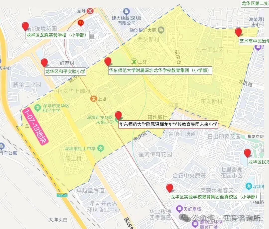 旁边还有龙华区和平中学、简上体育综合体、龙华区未来小学、红山中学,商业周边有上塘荟。
