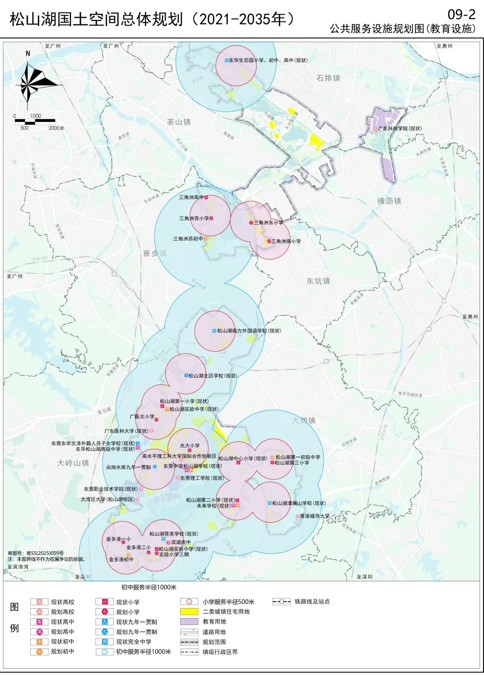 高等教育:规划新建香港城市大学(东莞)校区和高水平理工科大学国际合作创新区,并保留现有6所高校(东莞理工学院、广东医科大学、东莞职业技术学院、广东科技学院、大湾区大学松山湖校区、东莞技师学院)。落实1处片区级老年大学(与敬老院合建)。