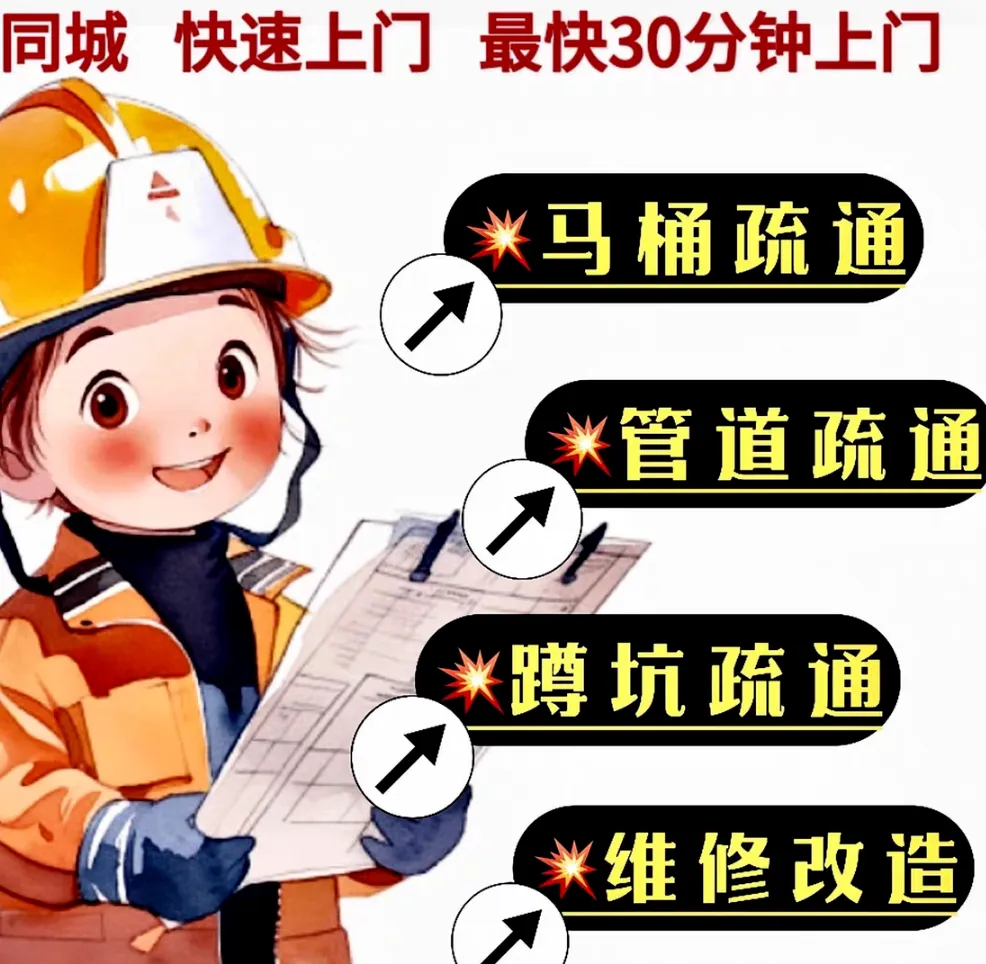 24小时专业管道疏通|30元起|10分钟上门|全城服务我们是本地专业疏通团队,提供疏通下水道、管道疏通、马桶疏通、地漏疏通、化粪池清理等同城上门服务。师傅24小时接单,快速上门。服务范围涵盖:疏通地漏、抽化粪池、维修水管、安装下水道水管、高压清洗管道等。全城区全天候服务,上门快、经验足、价格透明,是您身边的管道问题解决专家。