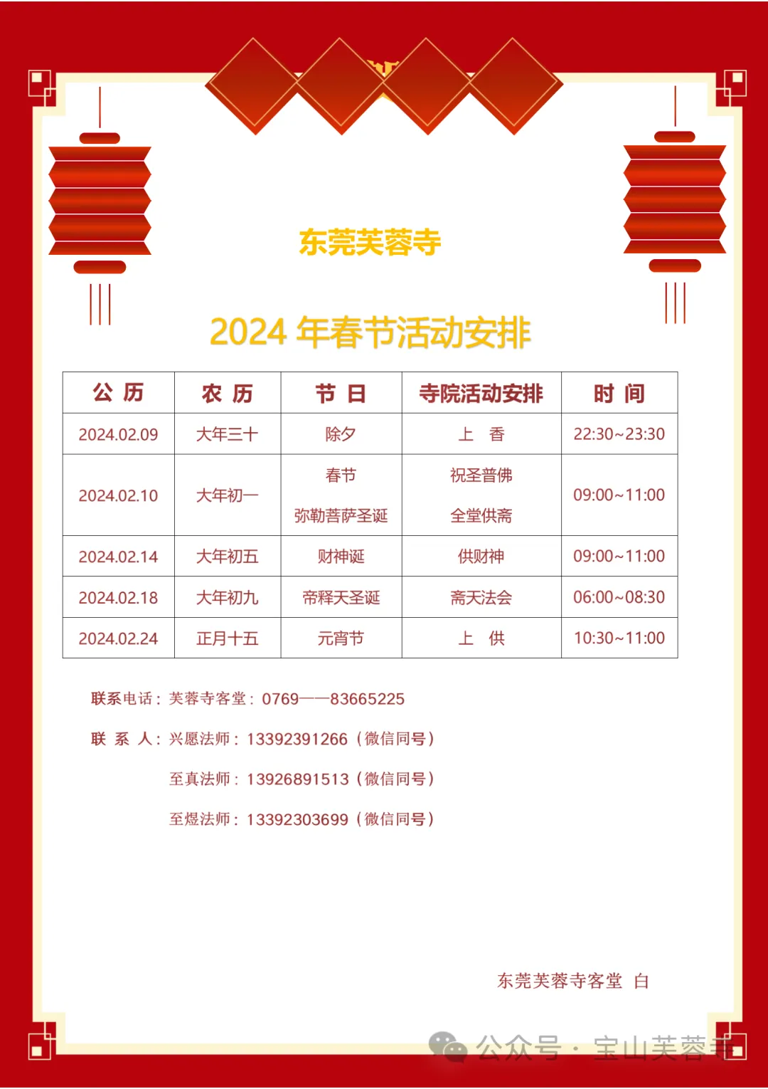 东莞芙蓉寺2024年春节活动安排