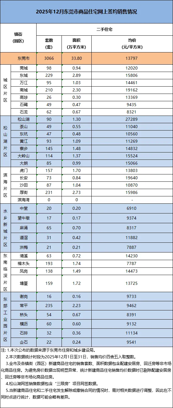 官方数据显示,2025年12月,东莞二手住宅网签套数为3066套,较上月增加了299套;网签均价为13797元/㎡,较上月的13466元/㎡有所上涨。
