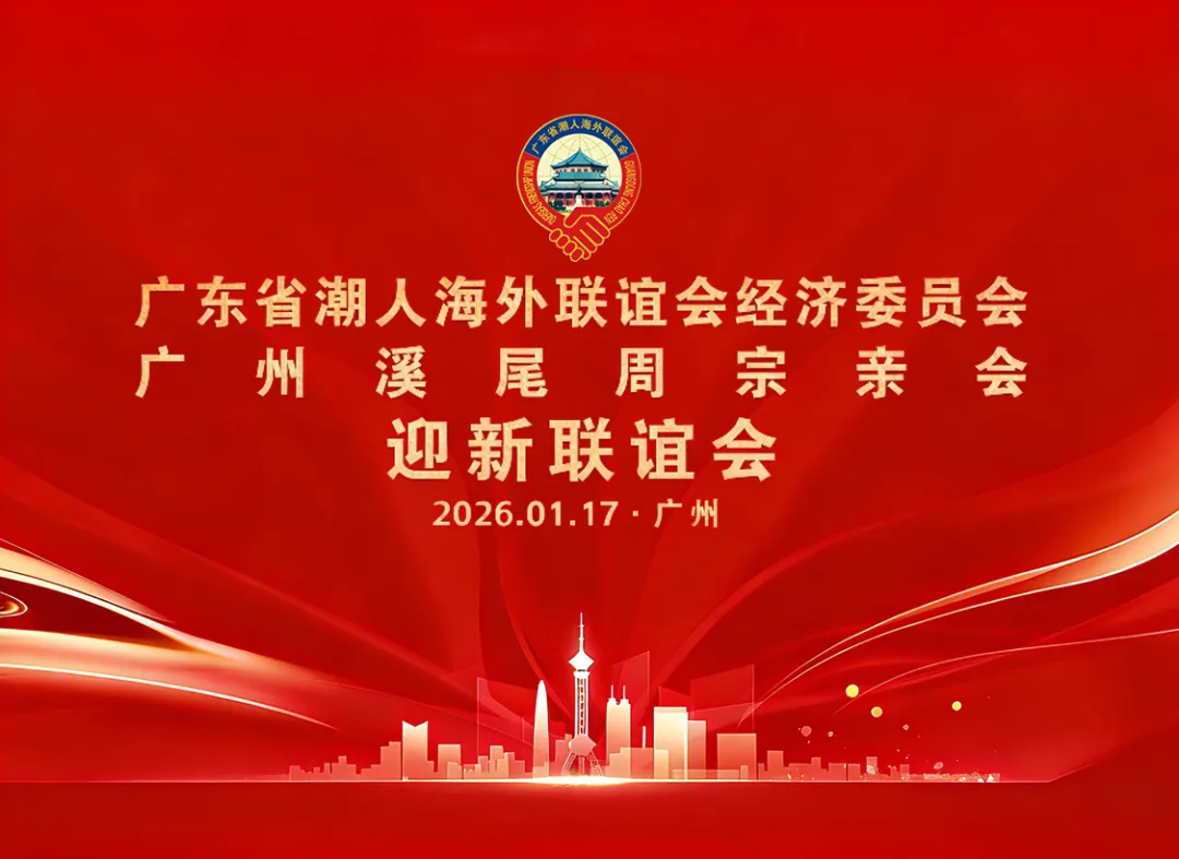 2026年新春暖意渐浓,马年蹄音悄然临近。1月17日下午,广东省潮人海外联谊会经济工作委员会(简称“经委会”)与广州溪尾周宗亲会联合主办迎新联谊会,近300位领导嘉宾、商界翘楚与宗亲代表欢聚一堂,以乡情为纽带,共叙潮人桑梓情深,以血脉为根基,同谱周氏团结华章。
