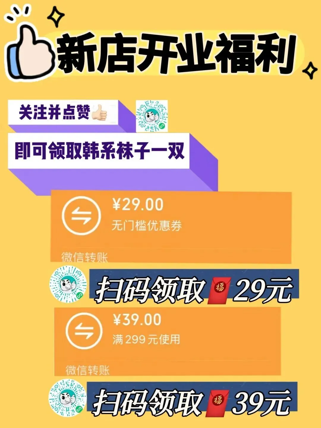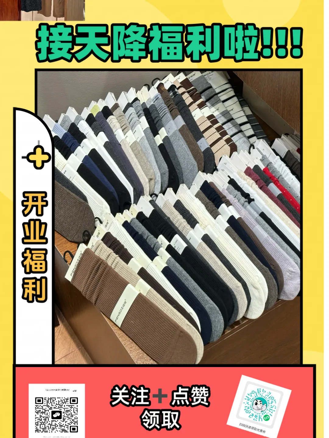 薅羊毛啦!新店开业,关注点赞就送韩系袜子,还有无门槛券+满减福利,冲!