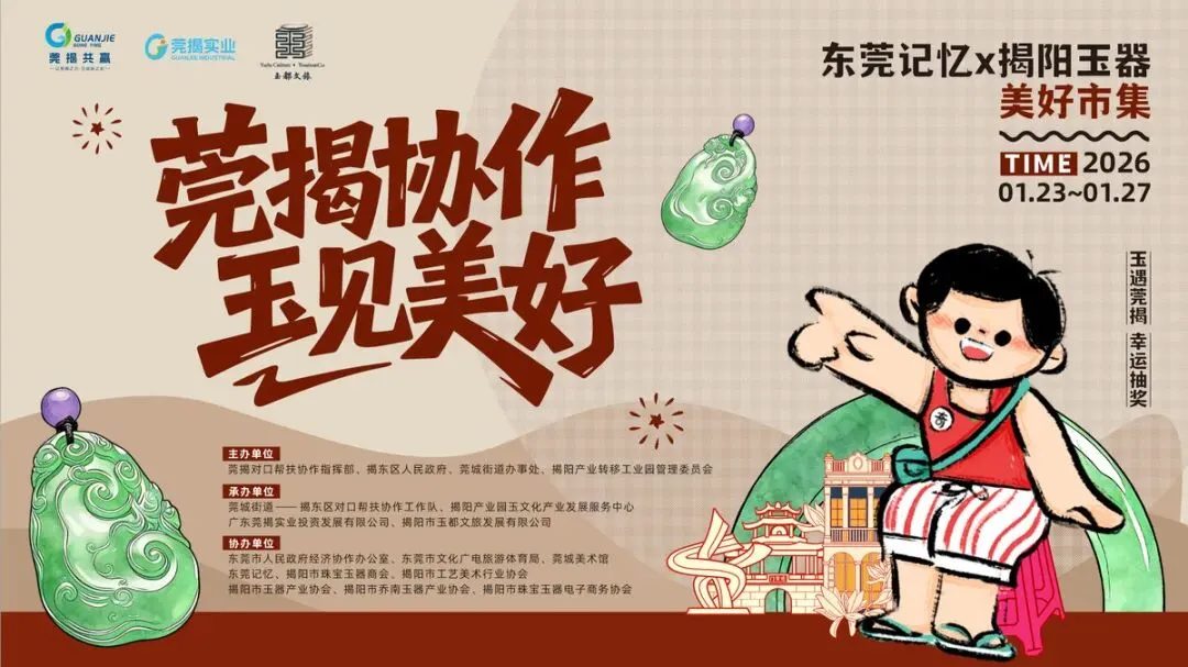本次活动是落实莞揭对口帮扶协作的重要举措,既展现揭阳“中国玉都”的产业实力与文化厚度,也为东莞市民带来一场可看、可学、可买、可玩的玉文化盛宴。诚邀广大市民、收藏爱好者、文化游客前来打卡体验,共赴这场温润如玉的冬日之约。