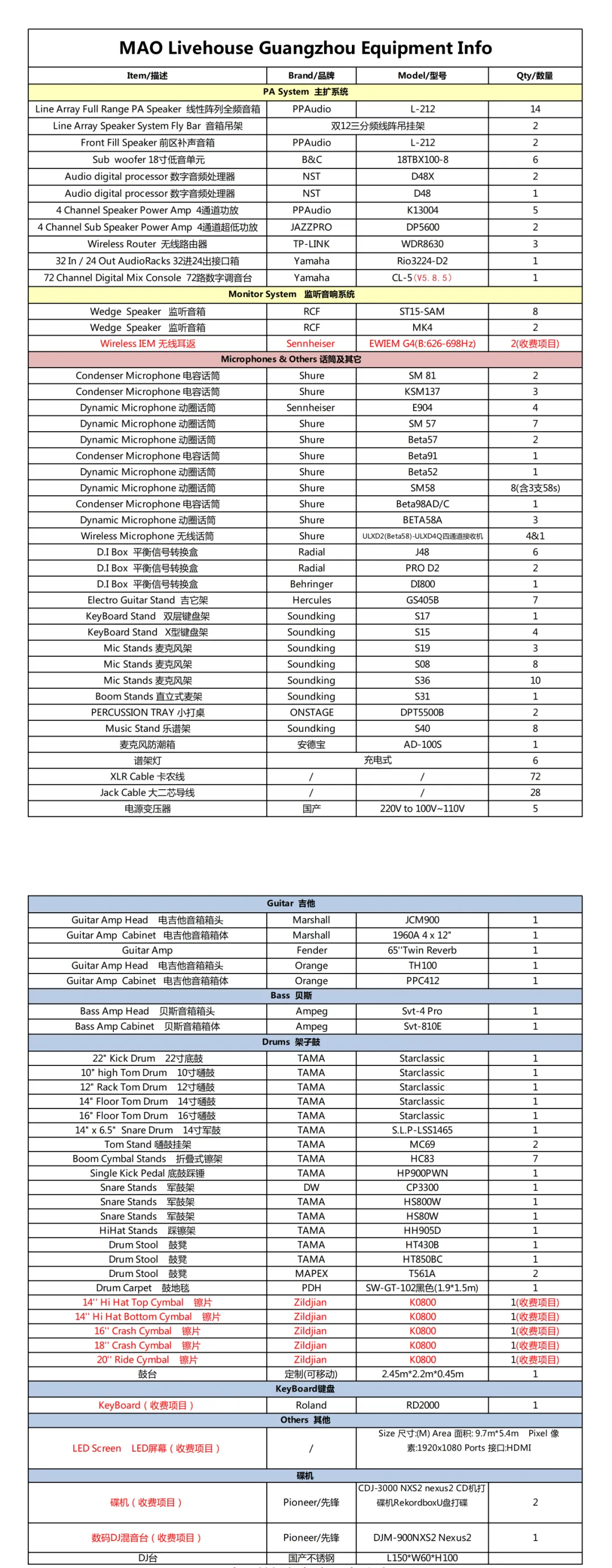 滑动查看LIVE厅设备清单>>