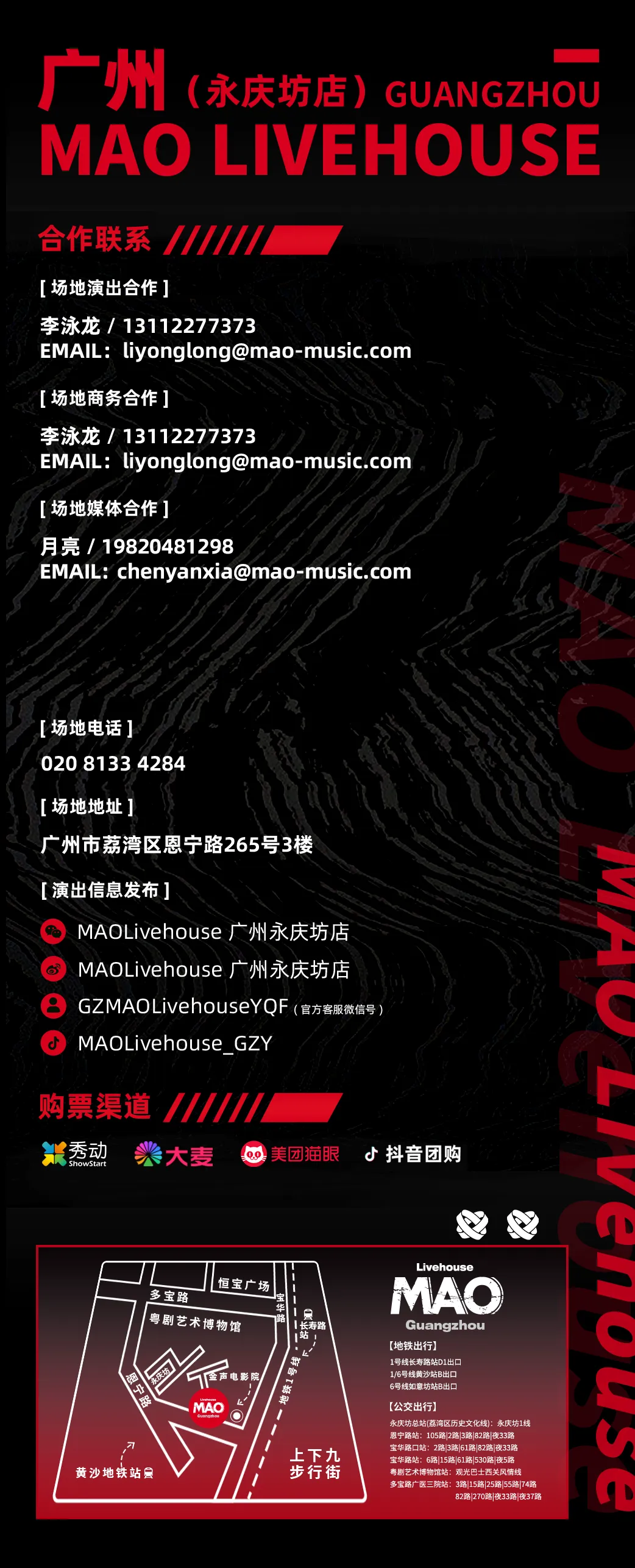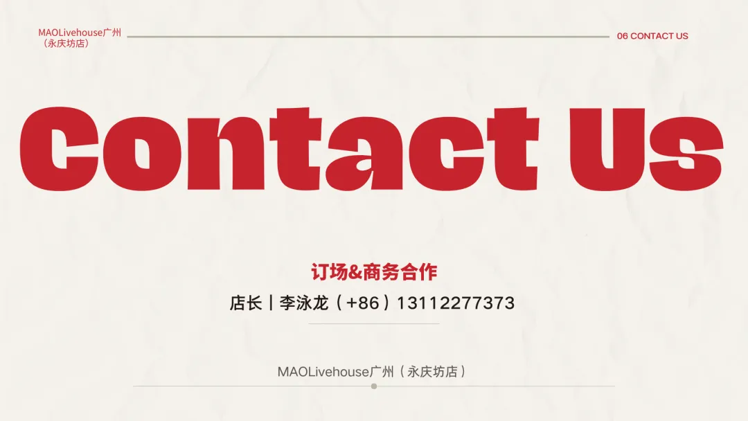 1.官方购票平台:包括但不限于秀动/大麦/猫眼/正在现场/云村有票/抖音(MAOLivehouse广州永庆坊店主页)等;请勿轻信黄牛。
