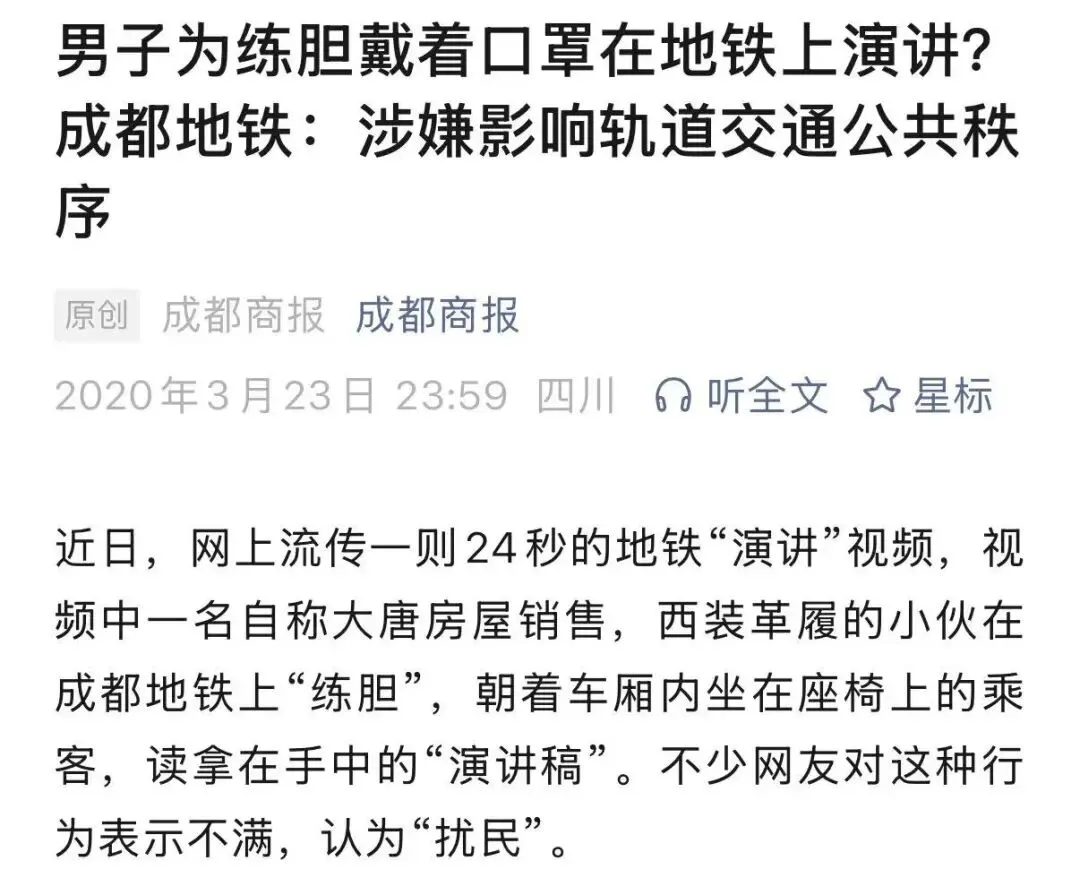 记者注意到,近年来,“公共场合高声演讲”频频引发关注,有自媒体博主将其视作“起号”的“流量密码”,网友的态度更是褒贬不一。