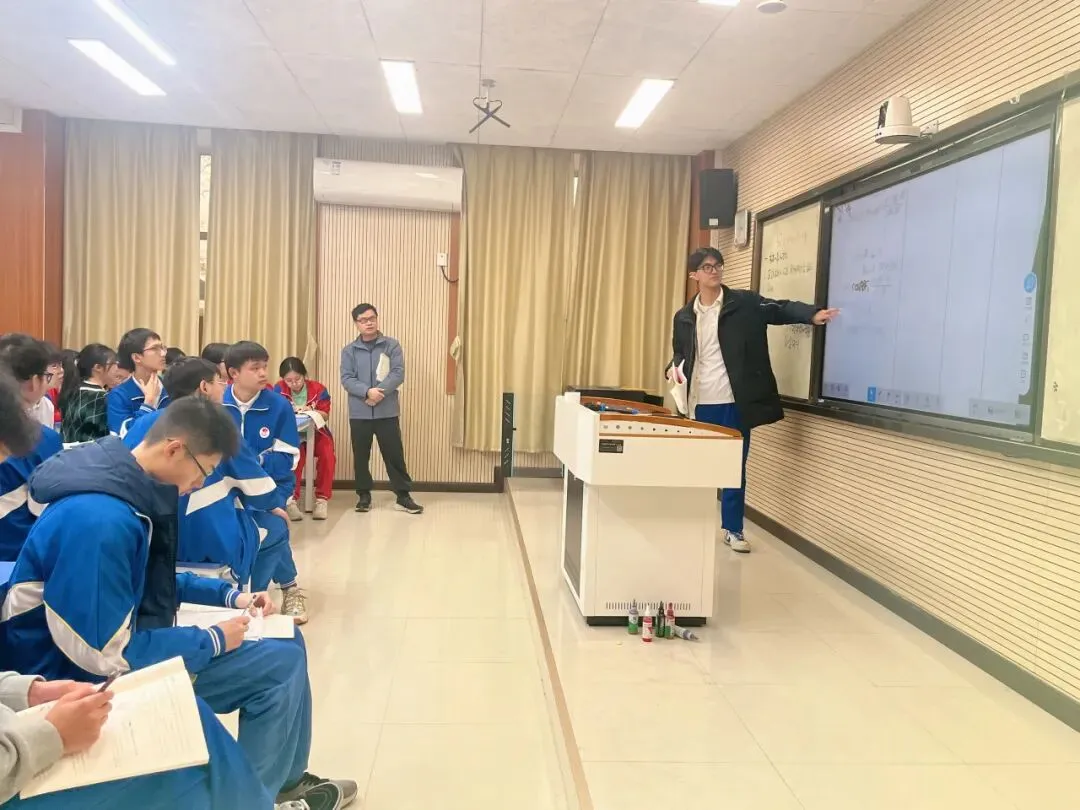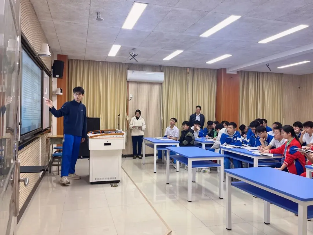 交流活动以课堂观摩拉开序幕。高三(2)班胡能其老师的数学课与高三(15)班史建勇老师的英语课同步开讲,展现了增城中学“三学课堂”的实践成果。史建勇老师的双语报套题讲评课,紧扣“学生为主体、教师为主导”理念,深度落实“三学课堂”要求。课堂上,学生自主梳理高频错题、分享解题误区、展示解题策略,小组讨论碰撞思维火花;史老师精准点拨词汇辨析、语法应用、语篇理解三大核心板块,聚焦完形填空逻辑衔接、阅读理解主旨归纳等难点,提炼同类题型应对策略,让学生在自主探究中强化知识迁移能力,尽显优质讲评课的针对性与实效性。胡能其老师以《离心率的计算突破》为主题,通过“前置研学—小组互学—教师帮学”三环节,引导学生自主归纳题型规律,在协作中破解重难点。两节公开课充分展现了学生自主学习的活力与教师精准引导的智慧,为观摩教师提供了鲜活的备考课堂范例。