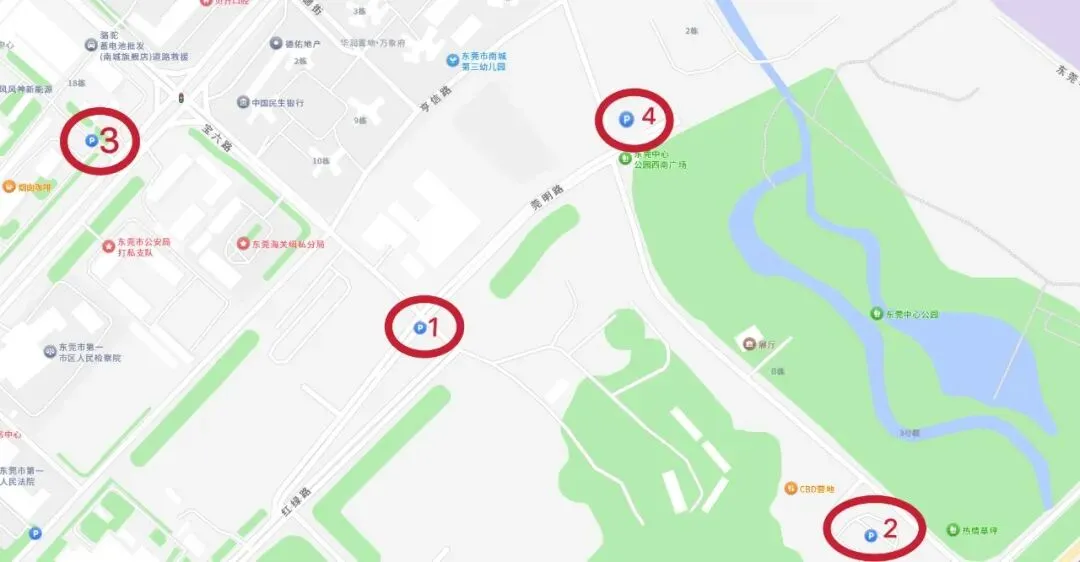 ④ 东莞中心公园西南广场旁停车场