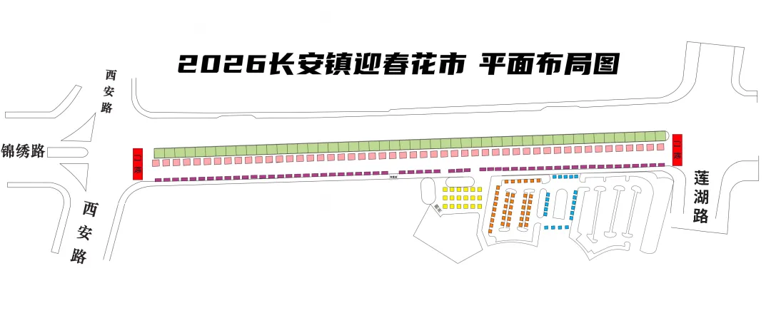 📍花市地点:长安镇锦绣路(西安路至莲湖路段)及体育公园西北侧停车场区域