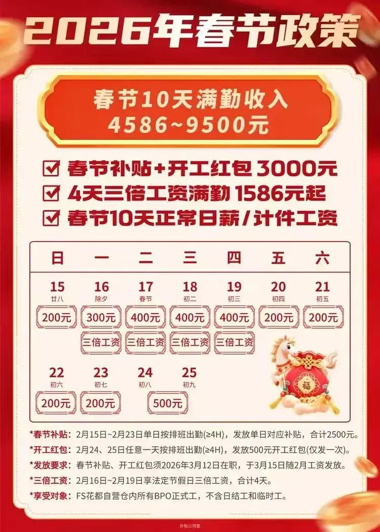 春节10天满勤收入4586~9500元