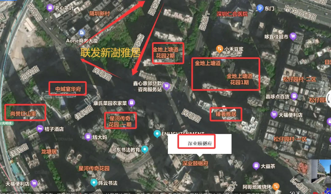 一方面,是因为项目去年6月经历10家房企57轮举牌,被联发以121200万元拍下,综合楼面价 44558.82元/平方米,成为龙华红山板块范围这些年来楼面价最贵的项目,是深圳区域宅地出让的里程碑。