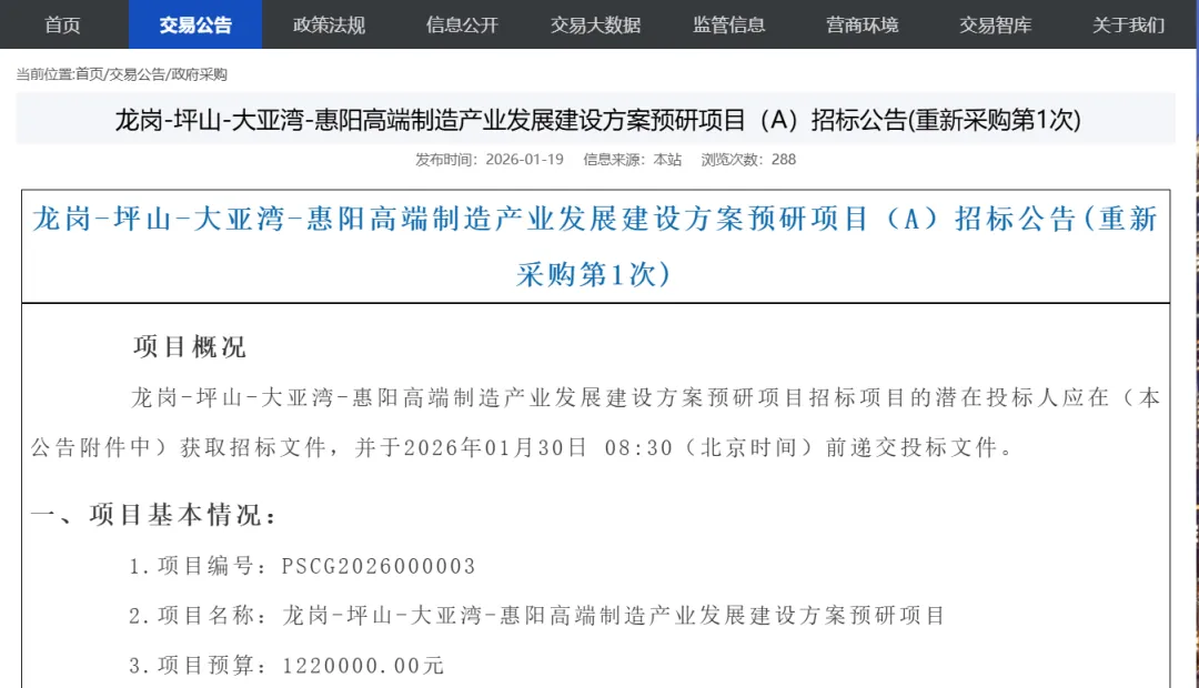 内容来源 |深圳公共资源交易中心、惠州日报、惠州市政府官网、惠州大亚湾经济技术开发区管理委员会交通运输和海洋经济局