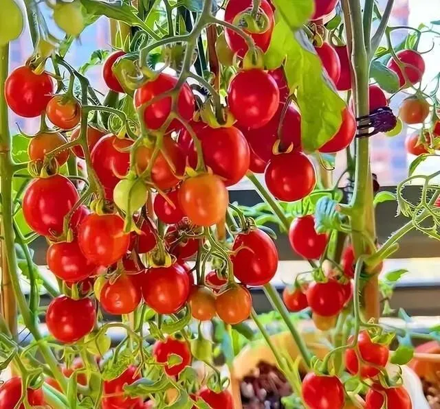 圣女果更绝 , 一串一串往下坠 , 红彤彤的 , 她自己摘着吃 , 说比外面买的甜。 我信 , 毕竟是自己伺候大的嘛。