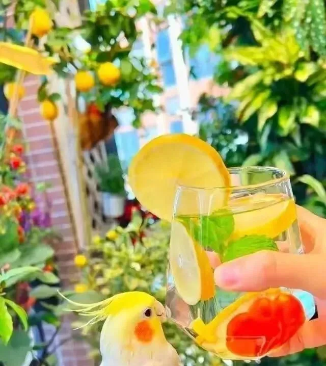 她家鹦鹉都馋这柠檬 , 哈哈~