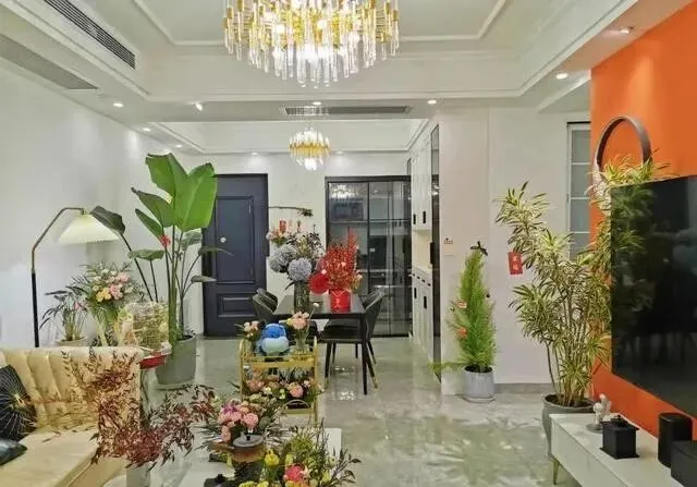 客厅里她放了百合竹、天堂鸟 , 大型绿植 , 净化空气 , 四季常青 , 家里人住着也舒服。