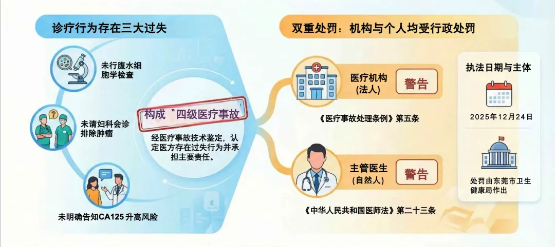 于是,东莞市卫生健康局对医院和主管医生均给予了“警告”的行政处罚。