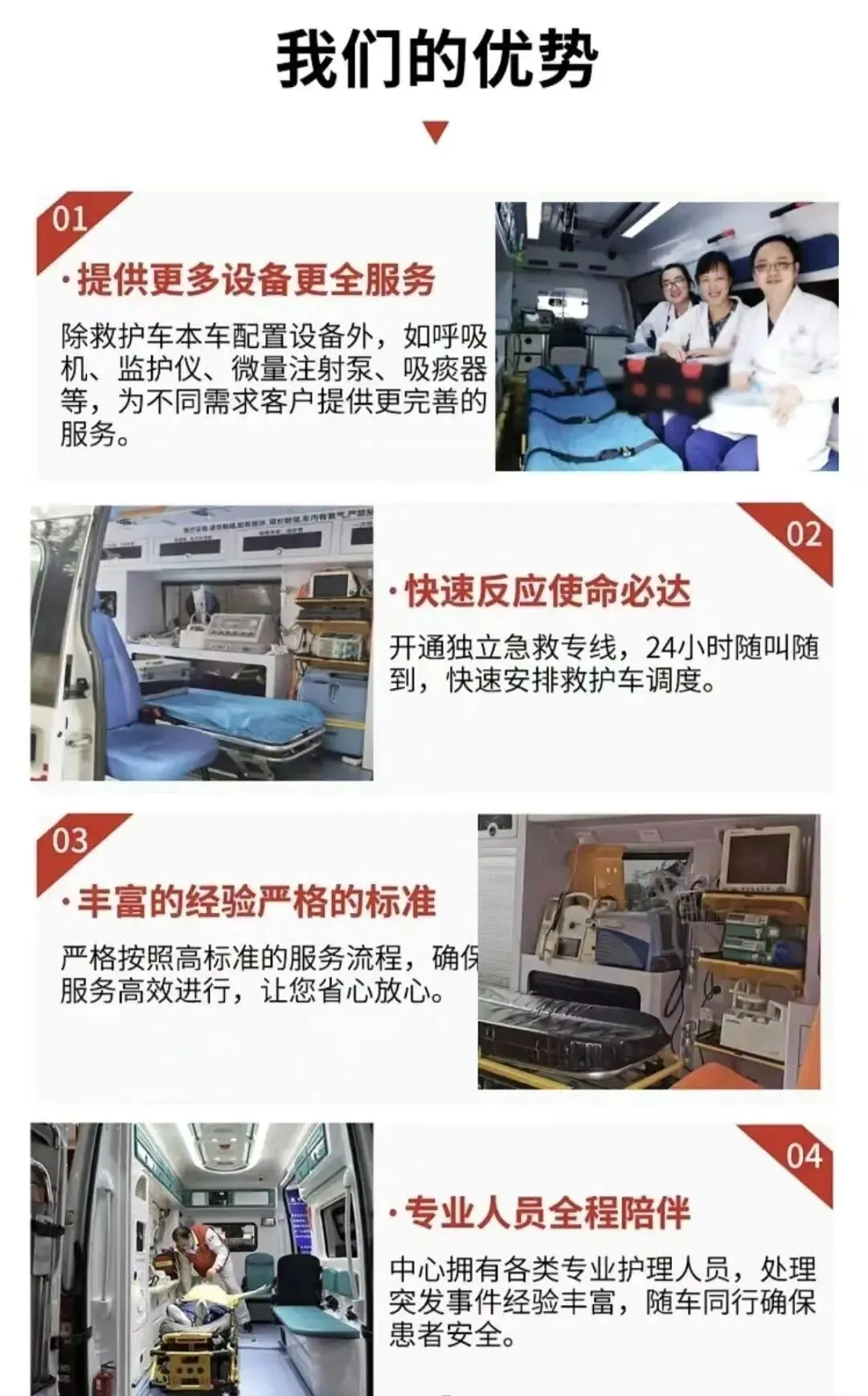 当重症患者需跨区就医、突发疾病需紧急转诊、异地康复需安全返程,每一次跨省医疗转运,都是与时间的赛跑,更是对生命的郑重嘱托。我们以“专业守护,安心远行”为初心,打造一站式转运解决方案,为生命搭建跨区域安全桥梁。