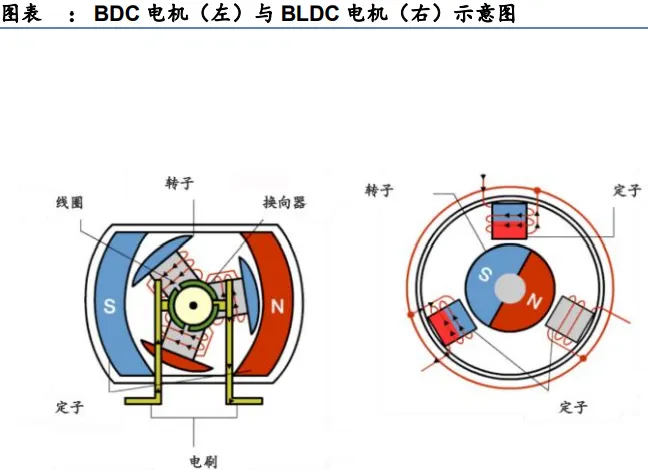 而BLDC电机,以电子换向器取代传统的接触式换向器和电刷,打破了BDC电机磨损高、效率低等缺点。
