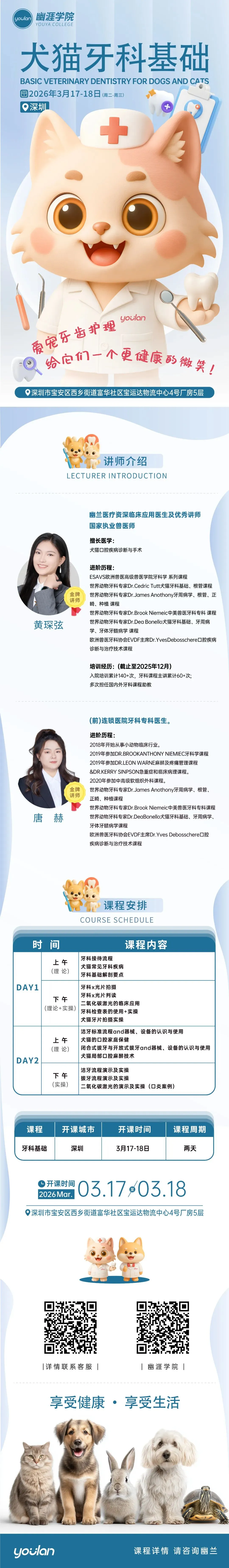 幽涯深圳|犬猫牙科基础课 黄琛弦&唐赫 3.17-3.18 深圳站即将启程
