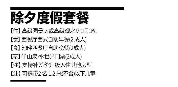除夕专场一口价,限量50套!卖完下架!畅享高级园景房/高级观水房+自助早晚餐+无限次温泉水世界门票,深圳30分钟可达,玩转半山水世界!