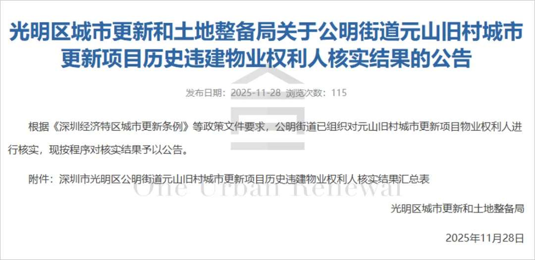 光明区公明街道元山旧村城市更新单元权利人核实公告