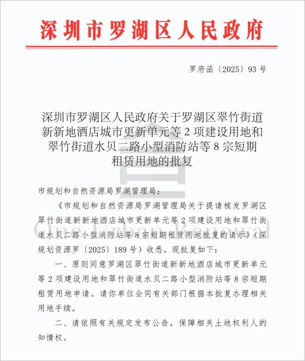 罗湖区翠竹街道新新地酒店城市更新单元(01-09地块)建设用地批复