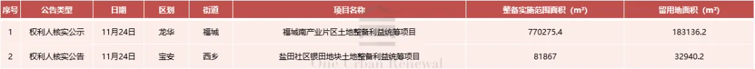 龙华区福城街道福城南产业片区土地整备利益统筹项目权利人核实公示