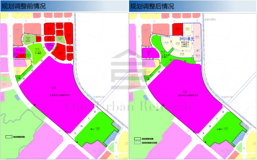 DY01规划控制单元,主导功能为居住、商业,用地面积169745㎡,规划容积:476800㎡,配套设施项目名称:文化活动中心15000㎡、12班幼儿园(占地面积3600㎡,建筑面积4010㎡)、9班幼儿园(占地面积2700㎡,建筑面积3150㎡)、2处托育机构各500㎡、社区管理用房250㎡、文化活动室1000㎡、长者服务中心1500㎡、社区服务中心600㎡、社区警务室100㎡、邮政所100㎡、通信单元机房60㎡、社区体育活动场地(场地面积2620㎡)、社区儿童游戏场地(场地面积3000㎡),备注:规划。(1)单元内规划居住容积不超过306260㎡,商业容积不超过143770㎡(含DY01-06地块酒店25000㎡)。(2)允许商业主导地块间道路地上联通及地下整体开挖,市政道路地下空间覆土深度应保障市政管线敷设的空间要求。(3)文化活动中心应设置在DY01-06地块,并设置独立对外联系的人行出入口。(4)配套设施的类型与规模在满足《深标》及相关标准规范要求的前提下,类型与规模的增加或减少视为符合规划。(5)后续设计应落实有关规划的通风廊道系统和管控要求。08-03地块,用地性质为教育设施用地,用地面积27329㎡,地块容积:—,配套设施项目名称:九年一贯制学校(54班),备注:规划。08-04地块,用地性质为公园绿地+公共管理与服务设施用地,用地面积62422㎡,地块容积:—,配套设施项目名称:其他公共管理与服务设施25500㎡、公共停车场(库)(不少于966个车位,含公共充电站1100㎡)、公共厕所120㎡、环卫工人作息场所20㎡、母婴室60㎡、公园儿童游戏场地(场地面积2000㎡),备注:规划,其中绿地面积不少于43947㎡。08-05地块,用地性质为商业用地,用地面积20657㎡,地块容积:—,配套设施:—,备注:现状。08-23地块,用地性质为公园绿地,用地面积10250㎡,地块容积:—,配套设施项目名称:垃圾转运站(400㎡,含再生资源回收站、环卫工人作息场所、公共厕所),备注:规划。11-01地块,用地性质为文体设施用地,用地面积506257㎡,地块容积:—,配套设施项目名称:大运中心体育场馆、文体设施及配套、公交首末站(含一处3000㎡和一处3600㎡)、公共厕所、环卫工人作息场所、公共停车场(库)、充电站、通信片区机房(200㎡)、应急避难场所(有效避难面积37.22公顷)、直升机坪,备注:规划/依据政府批件。12-06地块,用地性质为公园绿地,用地面积130524㎡,地块容积:—,配套设施项目名称:110kv变电站、公共厕所、环卫工人作息场所,备注:规划。