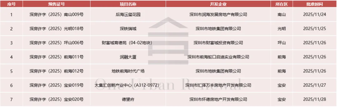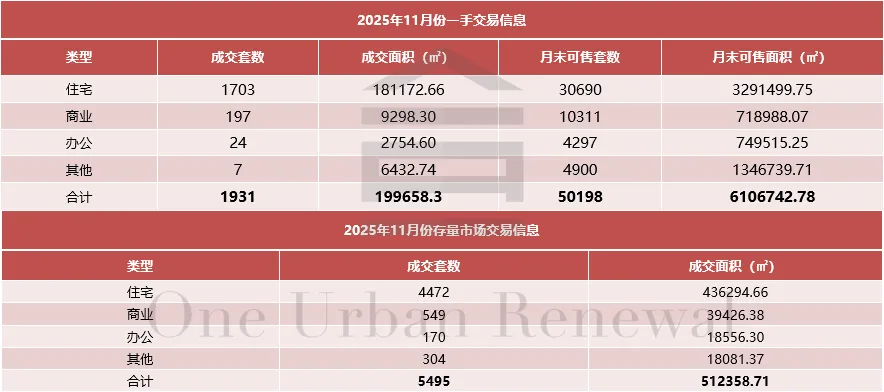 截至2025年11月30日(周日),已列入城市更新计划项目1063个,拆除范围面积累计8975.5h㎡,已通过城市更新专规批复项目757个,计容建筑面积累计24131.2万㎡,按数量规划通过率71.2%,按规模规划通过率68.5%,实施主体公示项目555个,拆除范围面积累计3632.6h㎡,按数量计划实施率52.2%,按规模计划实施率40.5%。
