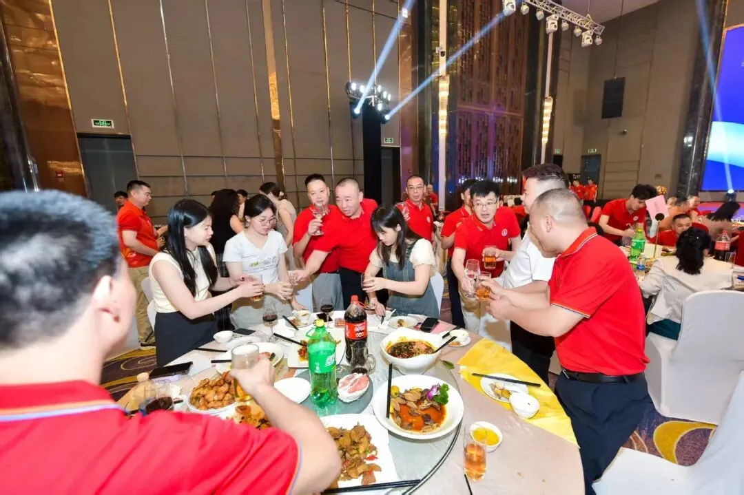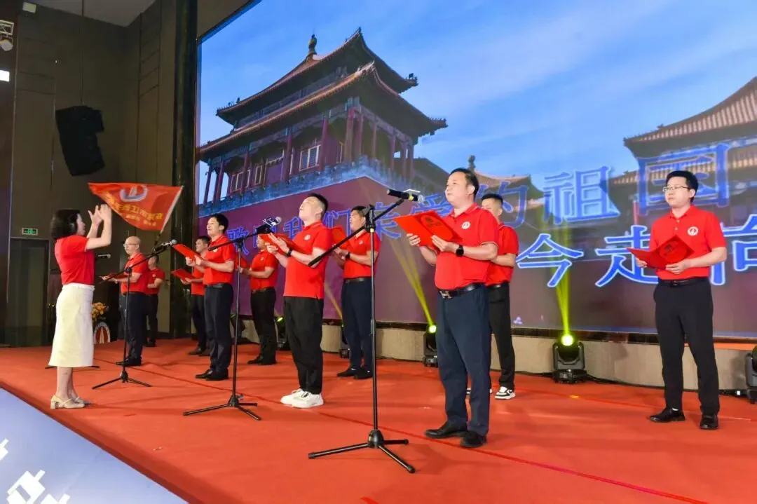 夜幕降临,华灯初上,活动迎来高潮 。18时整,嘹亮的国歌与激昂的商会会歌响彻会场,全体人员肃立致敬,家国情怀与商会担当在此刻交融 。