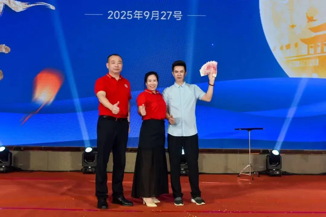 抽奖环节惊喜不断,成为全场焦点 。随着主持人依次念出中奖号码,投影仪上滚动的名单定格瞬间,欢呼声此起彼伏 。从品牌家电到于都特产礼盒,每份奖品都承载着商会的心意 ,中奖会员上台领奖时,脸上洋溢的笑容,让团圆的氛围愈发浓厚 ,未中奖的会员也在互动中感受着节日的欢乐 。