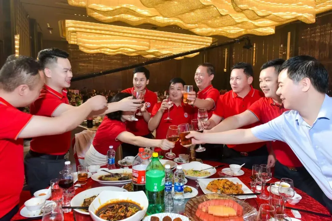 柯于辉会长携全体区长主任以上上台共同举杯,醇厚的美酒承载着美好祝愿!