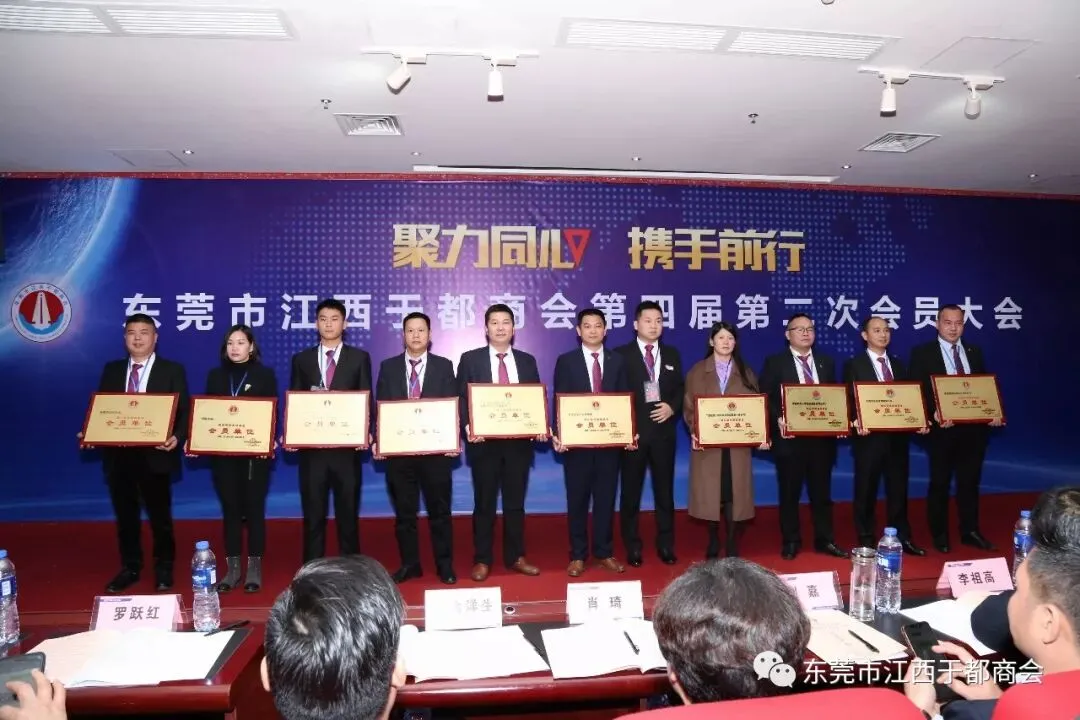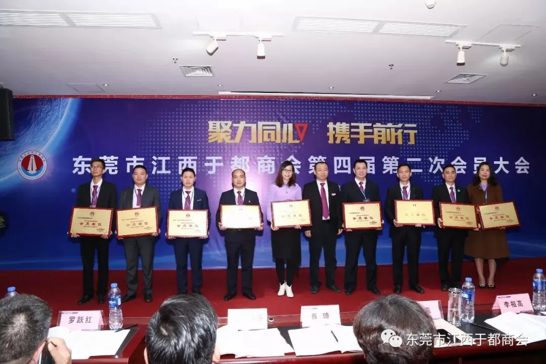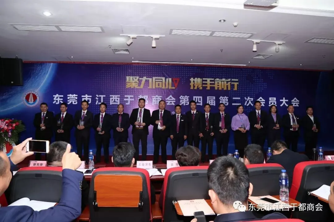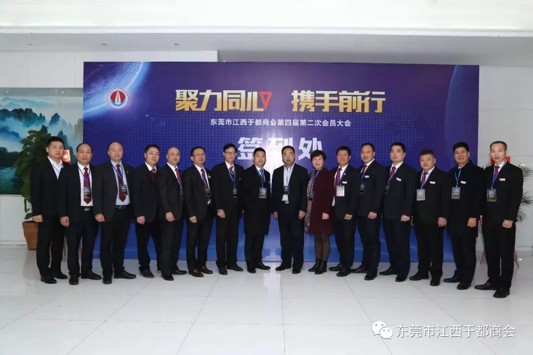 2019年1月2日,东莞市江西于都商会第四届第二次会员代表大会在万江尼罗河国际酒店隆重召开。东莞市江西于都商会会长候选人肖志华,执行会长肖忆华,执行会长候选人王金洋生、陈景红,常务副会长罗跃红、谢陈发、王观寿、谢元瑜、王新建、朱秀英、丁声福、刘晓亮,常务副会长候选人钟华、彭南凌、谢小泉、孙太阳、杨新华、柯于辉、杨六发,党支部书记刘蓉芳,监事长候选人刘政及商会副会长、常务理事、理事、会员近三百五十人出席本次会议。