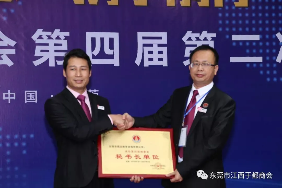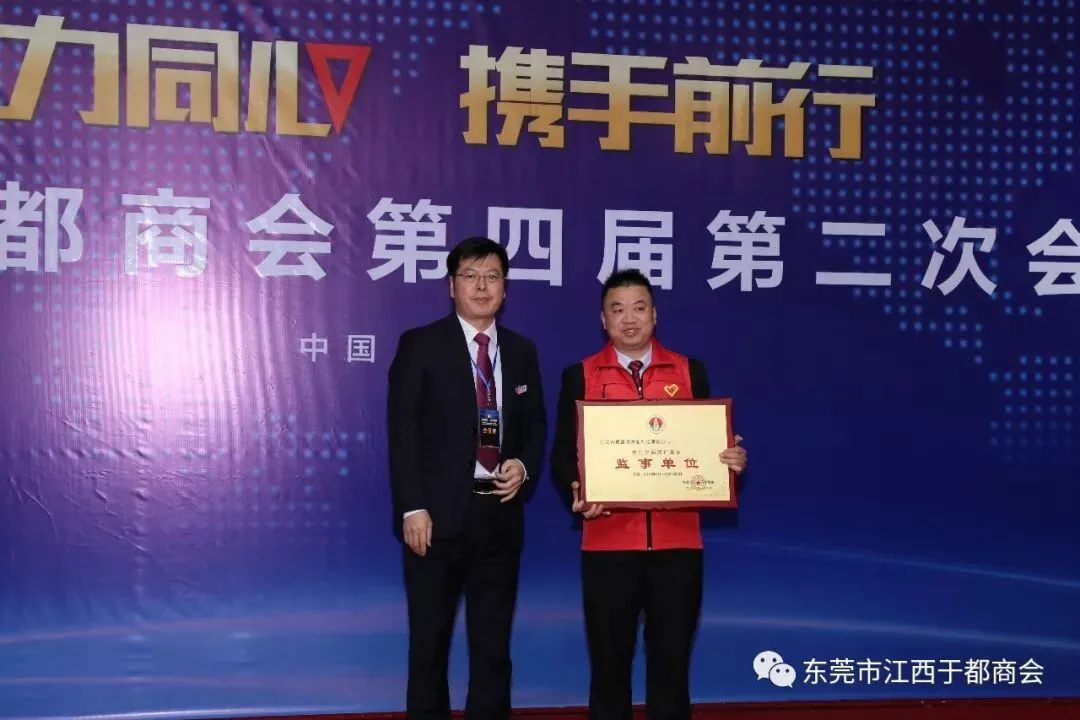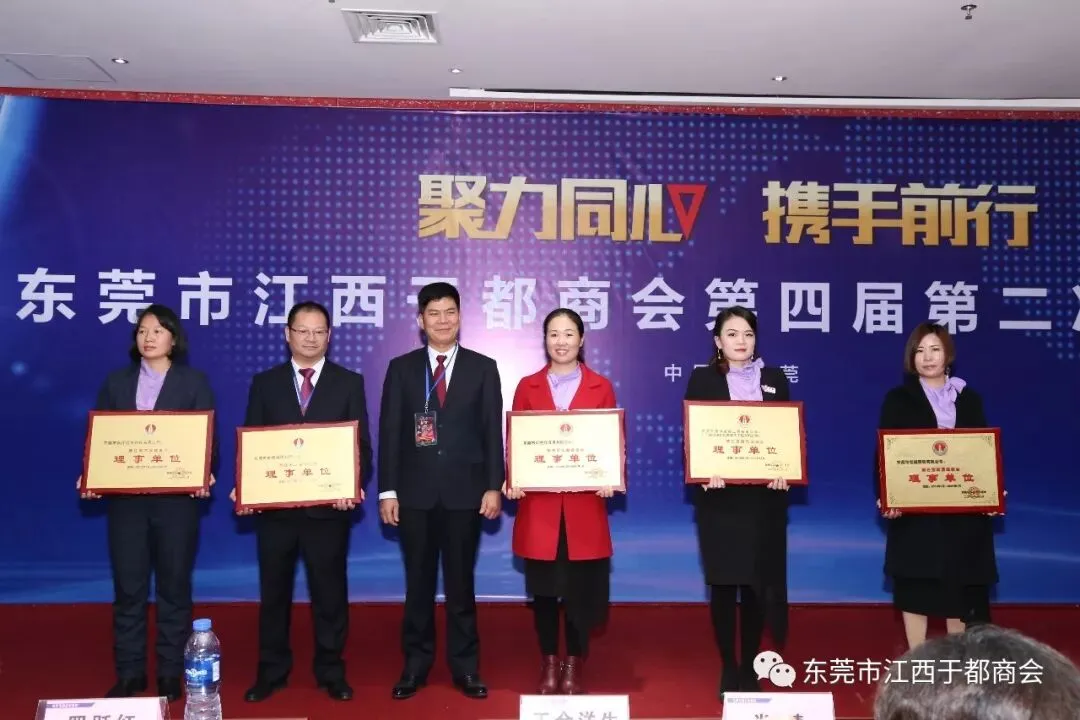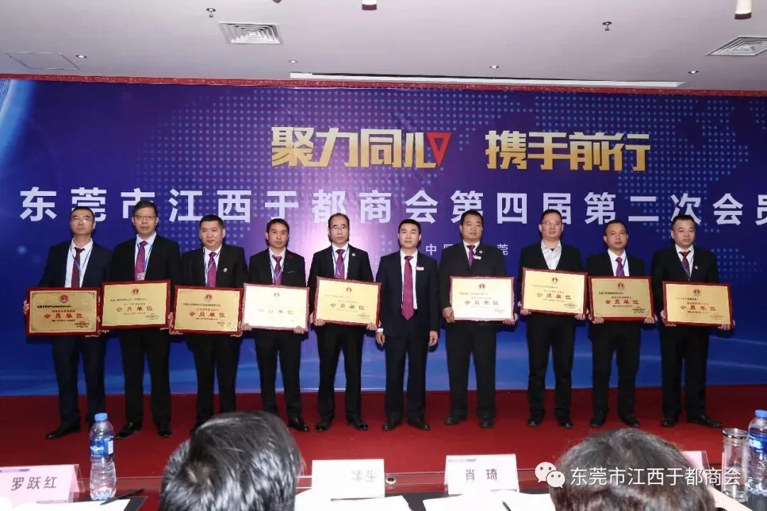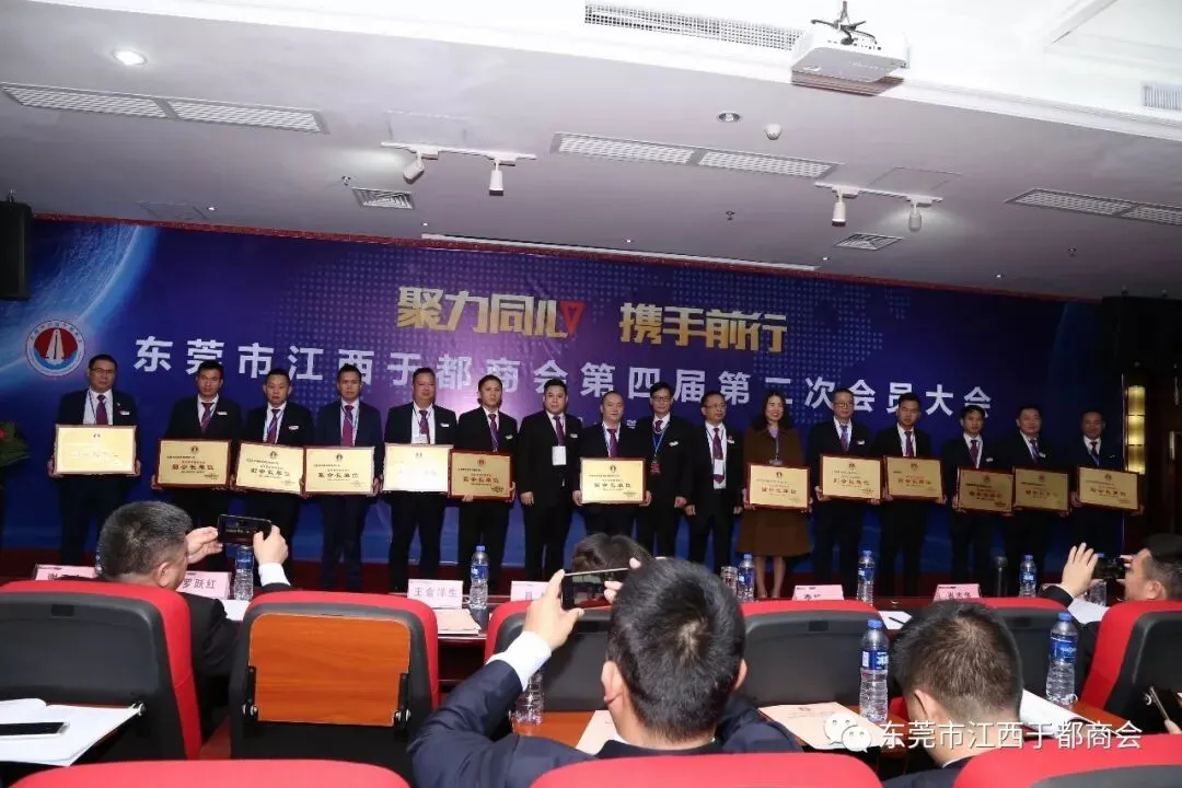 2019年1月2日,东莞市江西于都商会第四届第二次会员代表大会在万江尼罗河国际酒店隆重召开。东莞市江西于都商会会长候选人肖志华,执行会长肖忆华,执行会长候选人王金洋生、陈景红,常务副会长罗跃红、谢陈发、王观寿、谢元瑜、王新建、朱秀英、丁声福、刘晓亮,常务副会长候选人钟华、彭南凌、谢小泉、孙太阳、杨新华、柯于辉、杨六发,党支部书记刘蓉芳,监事长候选人刘政及商会副会长、常务理事、理事、会员近三百五十人出席本次会议。